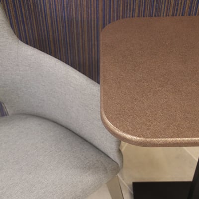 Stratek Metallics is a 3D vinyl laminate with impact resistance and water damage. Ideal for counters, tabletops, desks and work surfaces.
